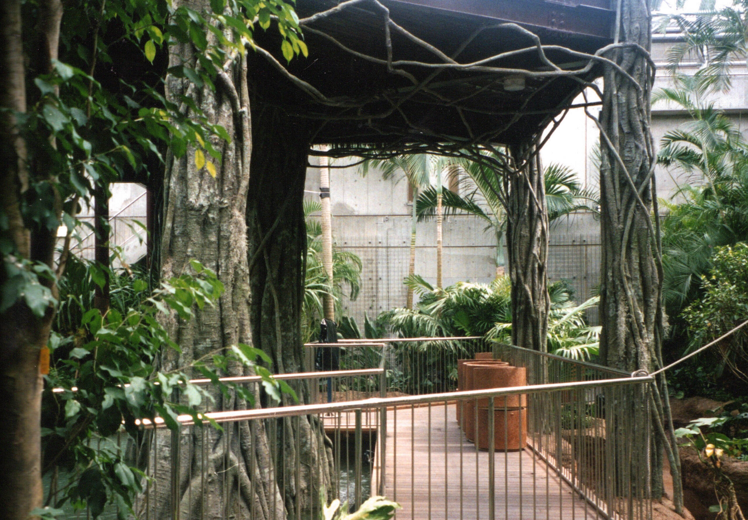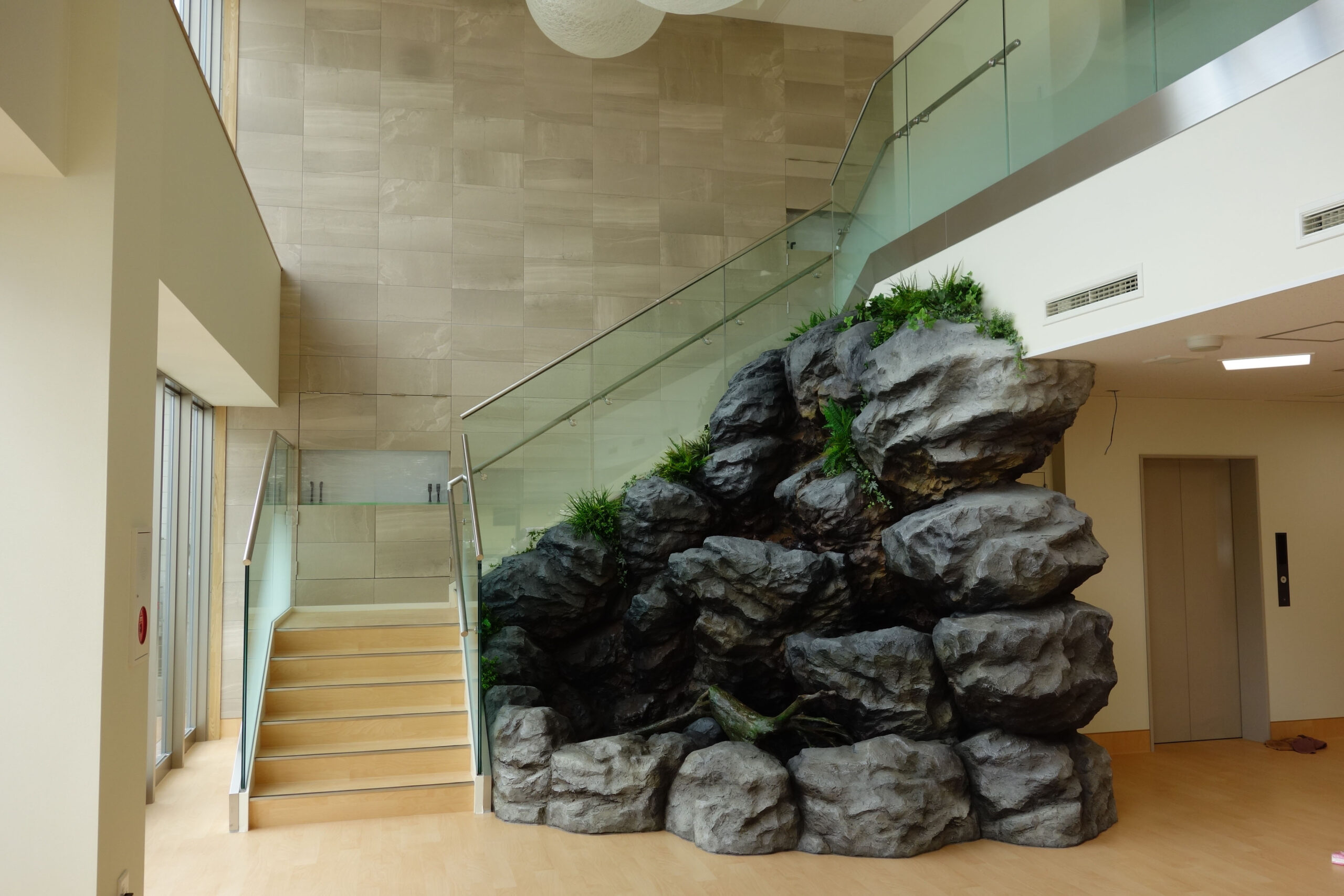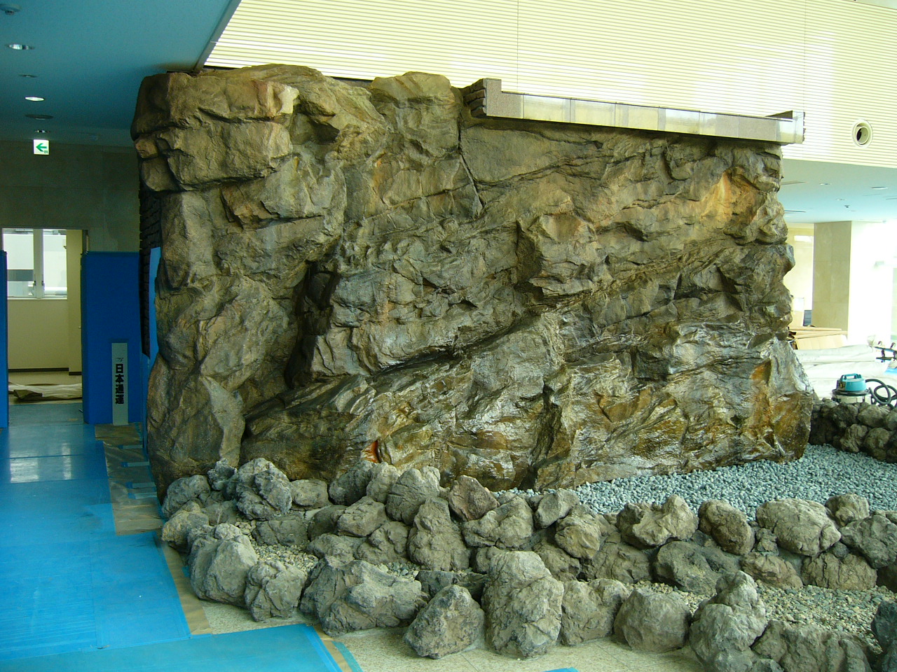 FRP擬木は樹皮をFRPで作て組み立て、それに自然枝、擬葉を取り付けて自然木のたたずまいを再現します。FRP擬岩は屋外の景観模型をもとにパネル工法により制作、現地にて組み立てます。循環ポンプを使用し滝などの情景もダイナミックに再現します。資料館、博物館のジオラマ、鍾乳洞再現、植物園や動物園、水族館、テーマパーク、また温泉やプールの景観をリアルに演出します。