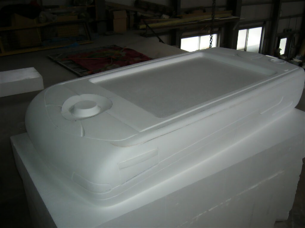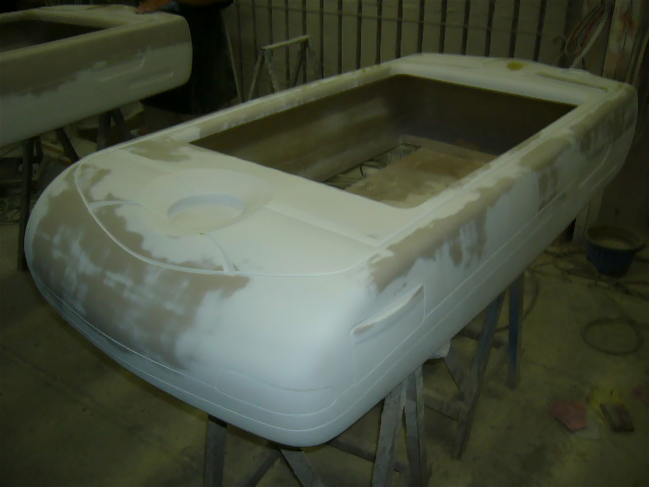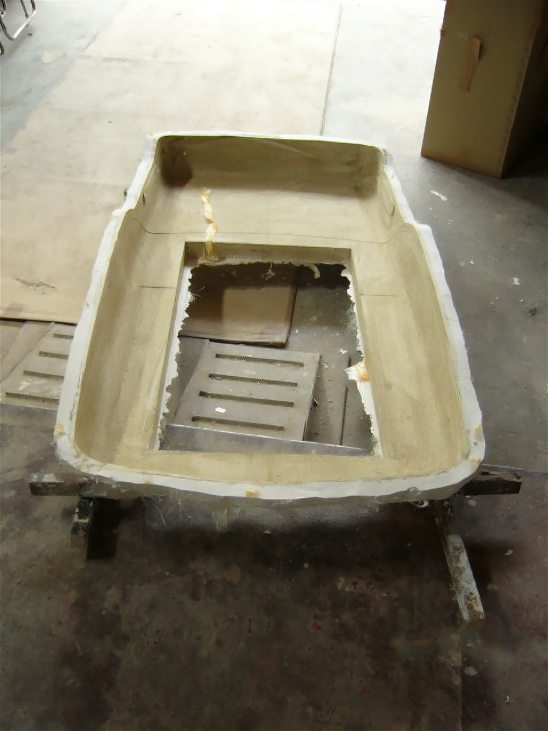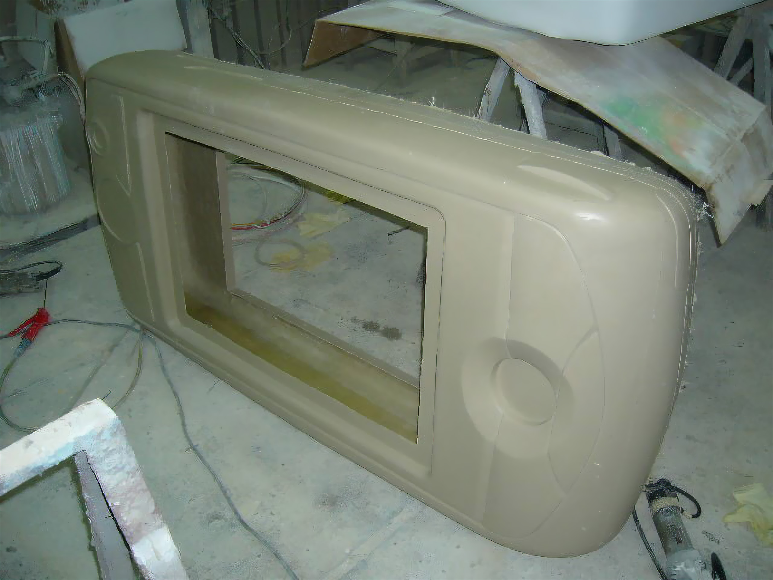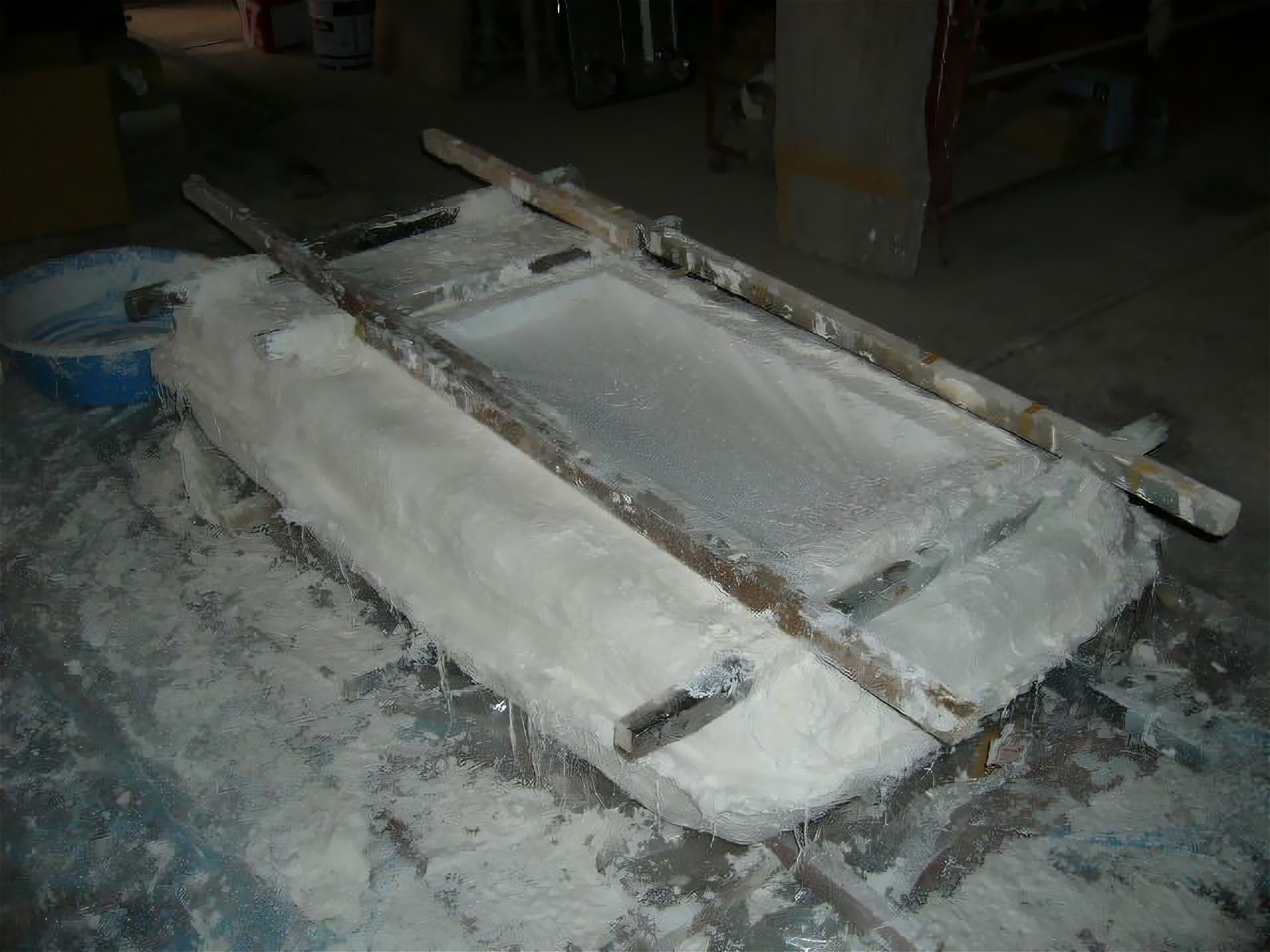 マスター型(FRP雄型)よりFRP雌型を作り、これから複数の製品を型抜きします。雌型にはシリコンゴムを使う場合もあります。